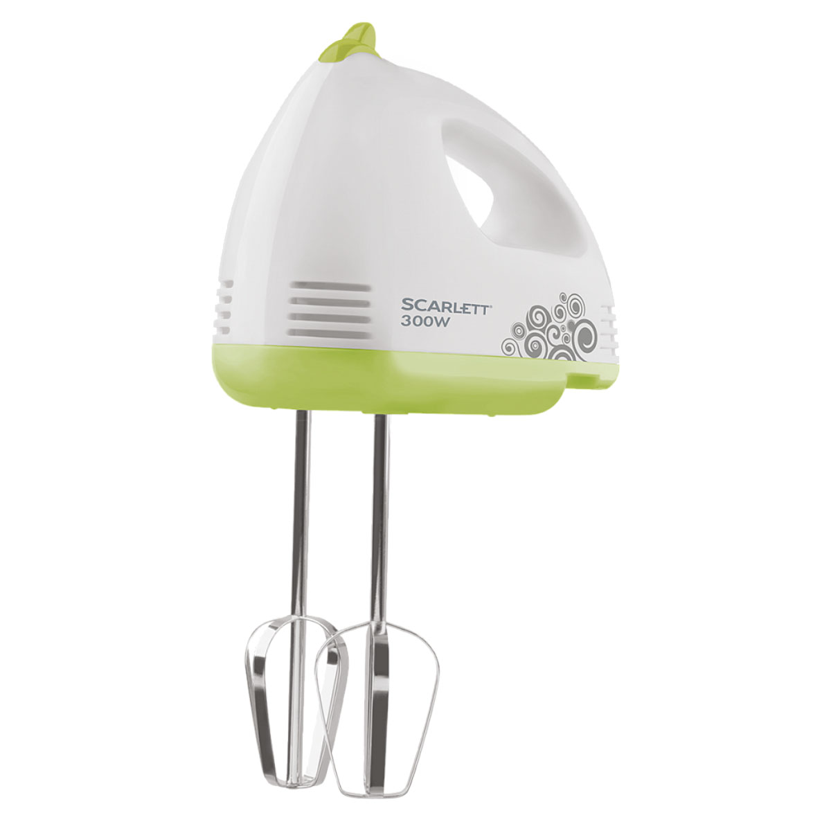 Миксер эл. Scarlett SC-HM40S05, мощность 300Вт, 7 режимов скорости, белый с зеленым