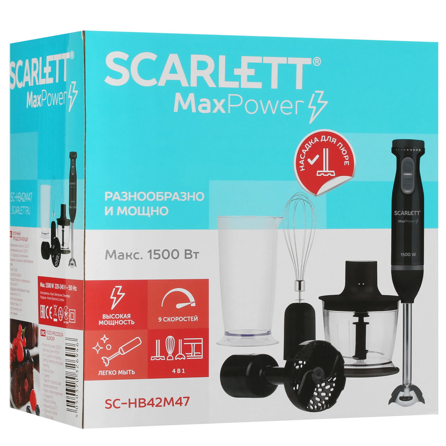 -Блендер погружной SC-HB42M47, 1500Вт, черный