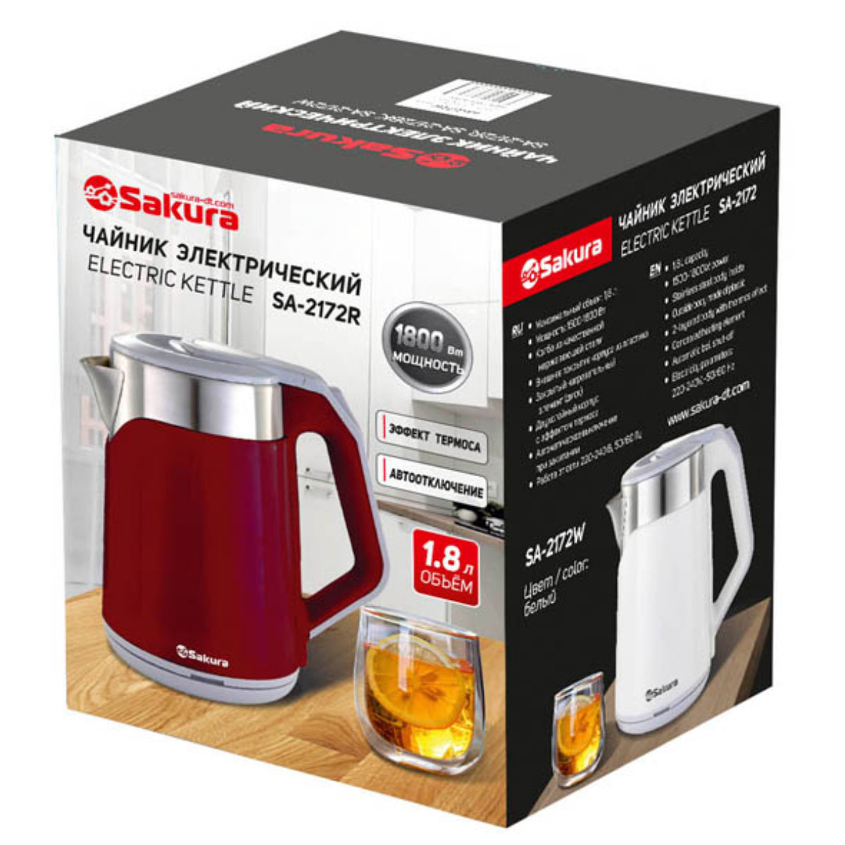 Чайник эл. SAKURA SA-2172R, 1,8л, красный