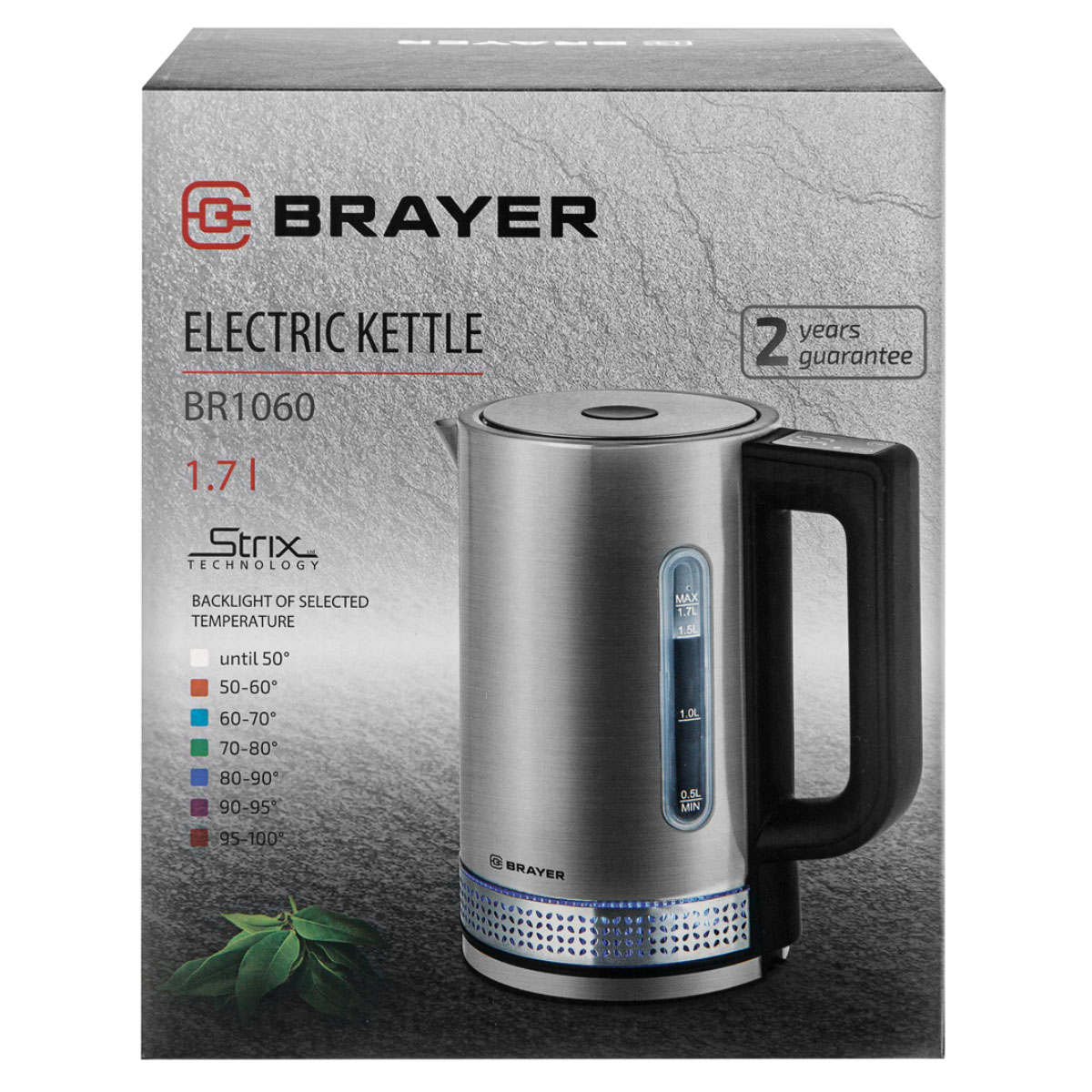 -Эл.чайник BR1060 1,7 л 2220Вт нерж./покрытие пластик черн. BRAYER