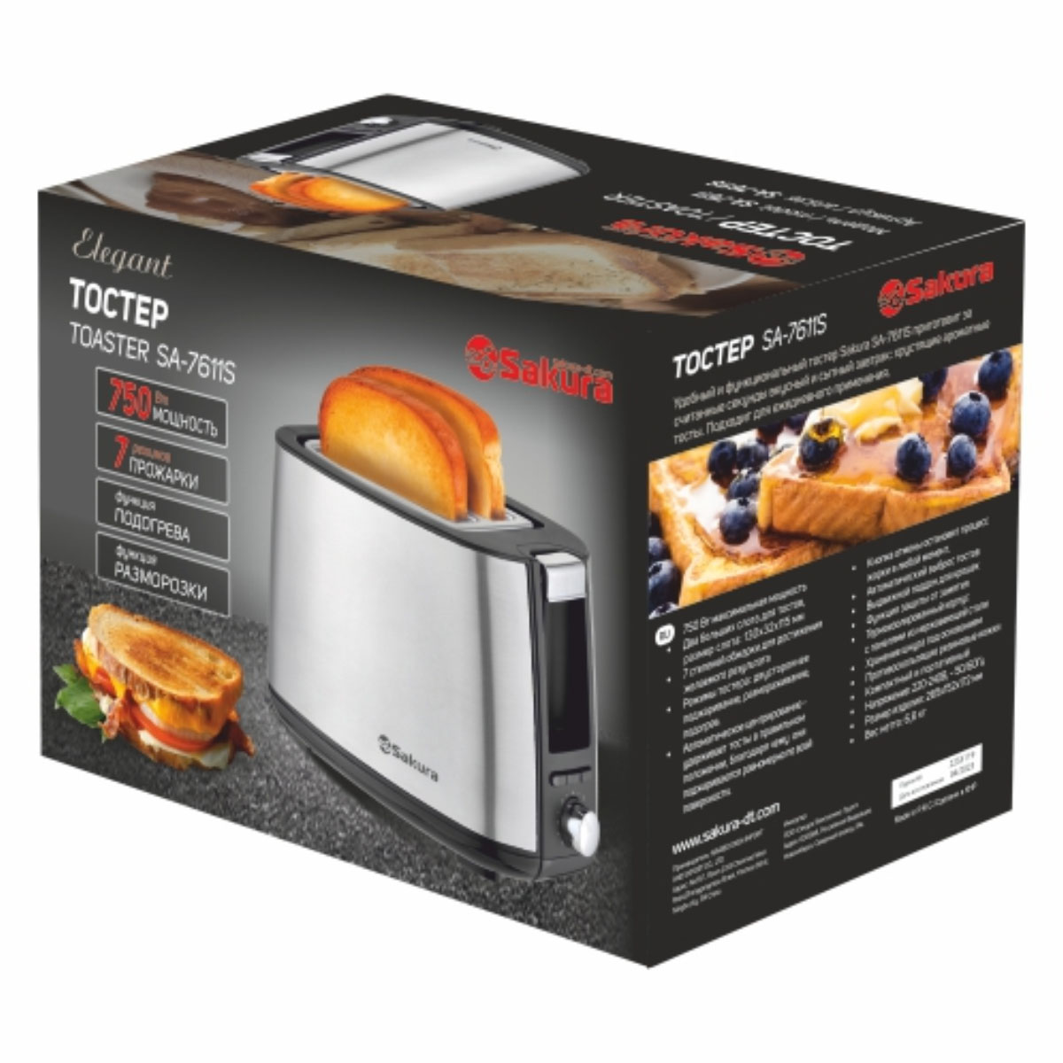 -Тостер SA-7611S Elegant 750Вт сталь