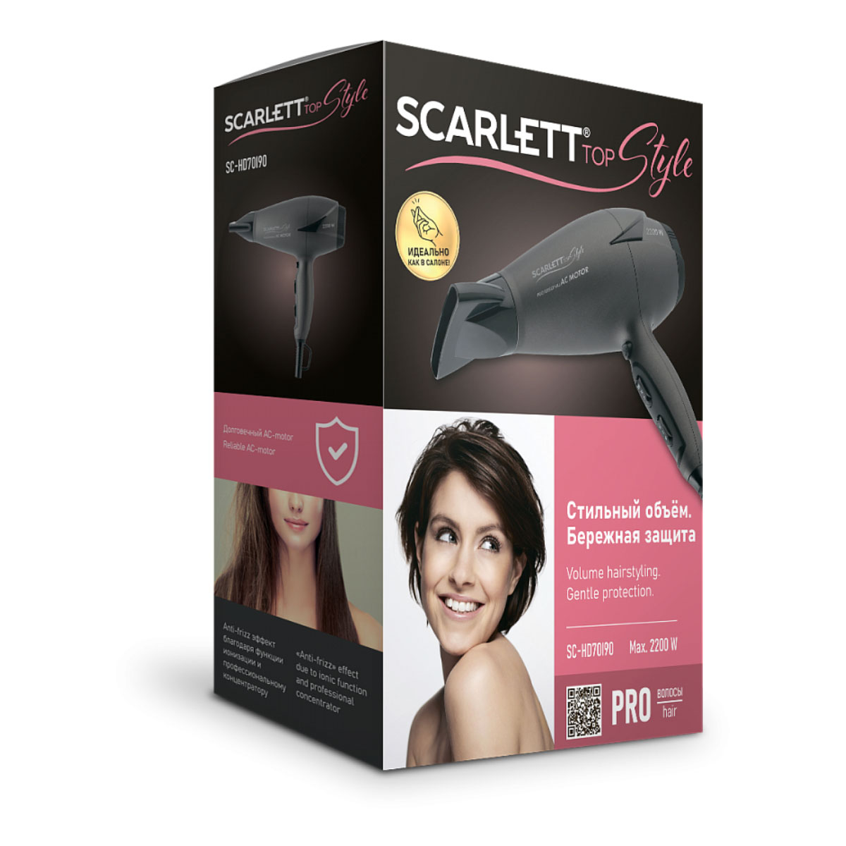Фен эл. Scarlett SC-HD70I90, с АС-мотором, темно-серый