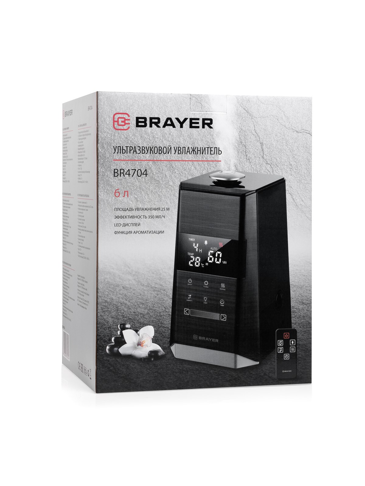 Увлажнитель воздуха эл. BRAYER BR4704, 6л, ультразвук.,25м(40-80%),таймер,дисплей,15ч.,пульт,теплый