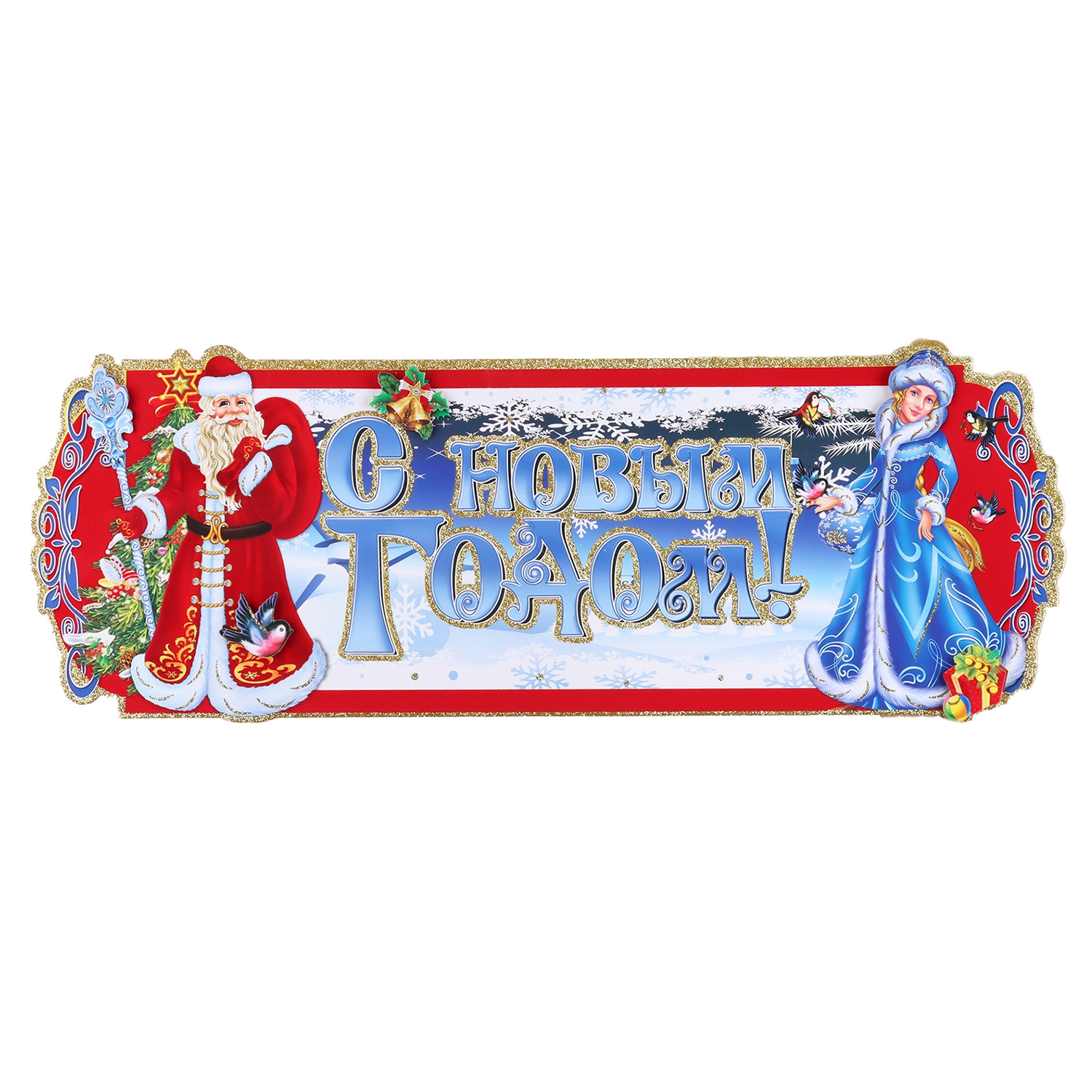 Плакат на стену 10652714 "Новогодние" Дед Мороз, Снегурочка, 24 х 64 см
