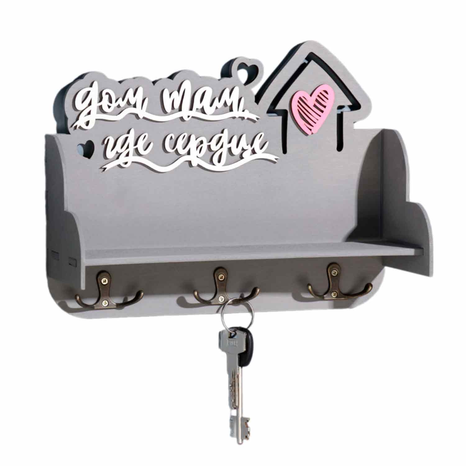 -Ключница с полкой 9939811 "Дом, там где..." 28х23х7,5см, розовое сердце