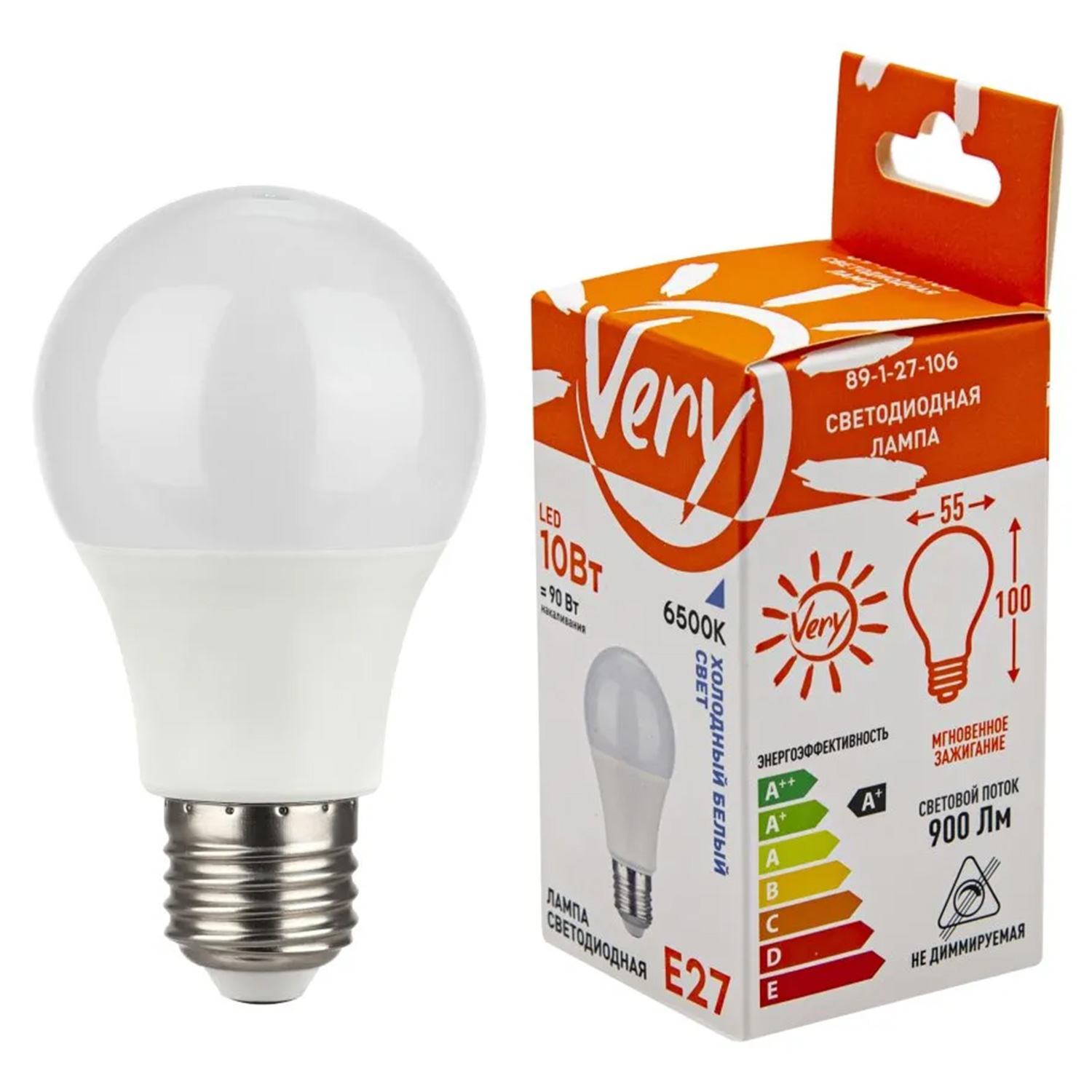 Лампа светодиодная груша A60, 10Вт, 6500К, E27 89-1-27-106 "Very"