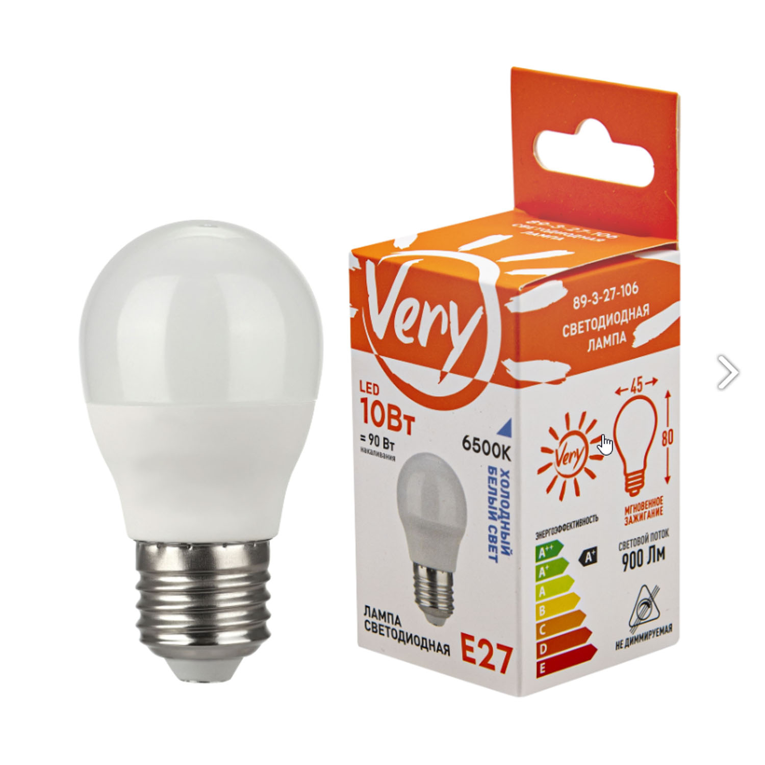 Лампа светодиодная шар GL45, 12Вт, 6500К, E27 89-3-27-126 "Very" - купить на сайте vdd36.ru