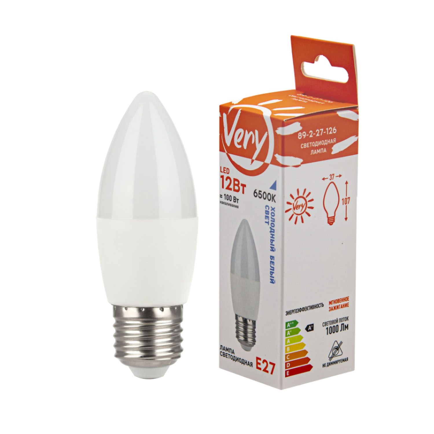 Лампа светодиодная свеча CN, 12Вт, 6500К, E27 89-2-27-126 "Very"