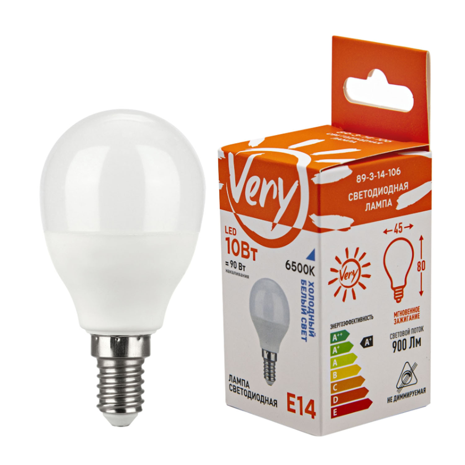Лампа светодиодная шар GL45, 10Вт, 6500К, E14 89-3-14-106 "Very"