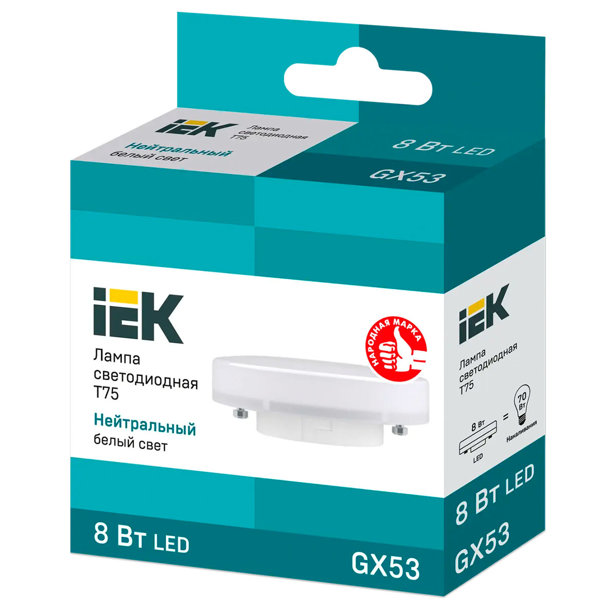 -Лампа светодиод.ЕСО 8Вт таблетка 4000К Т75 IEK LLE-Т80-8-230-40-GX53 463157