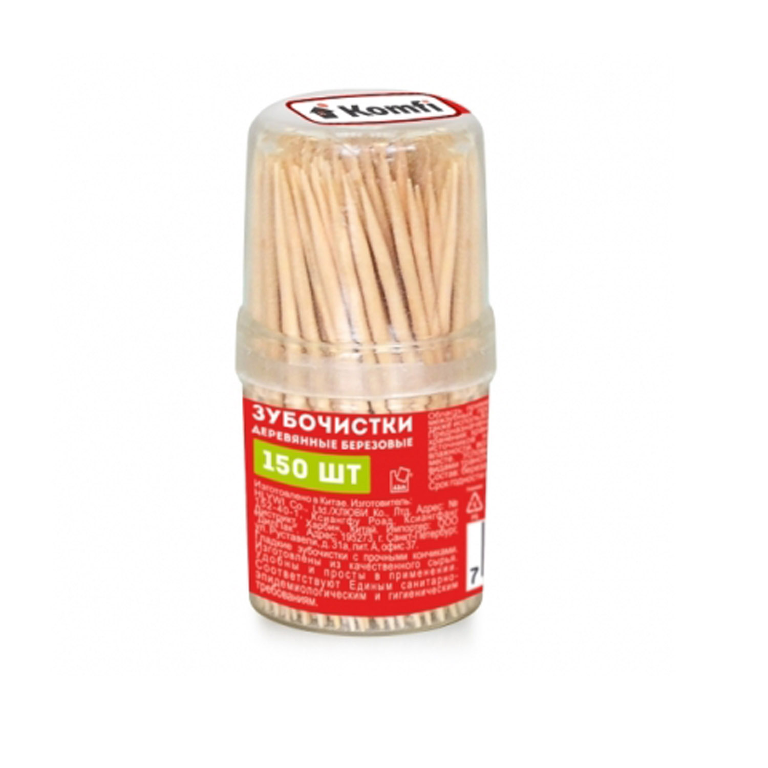 Зубочистки бамбуковые 150шт KWN150D в баночке, Komfi 120/10