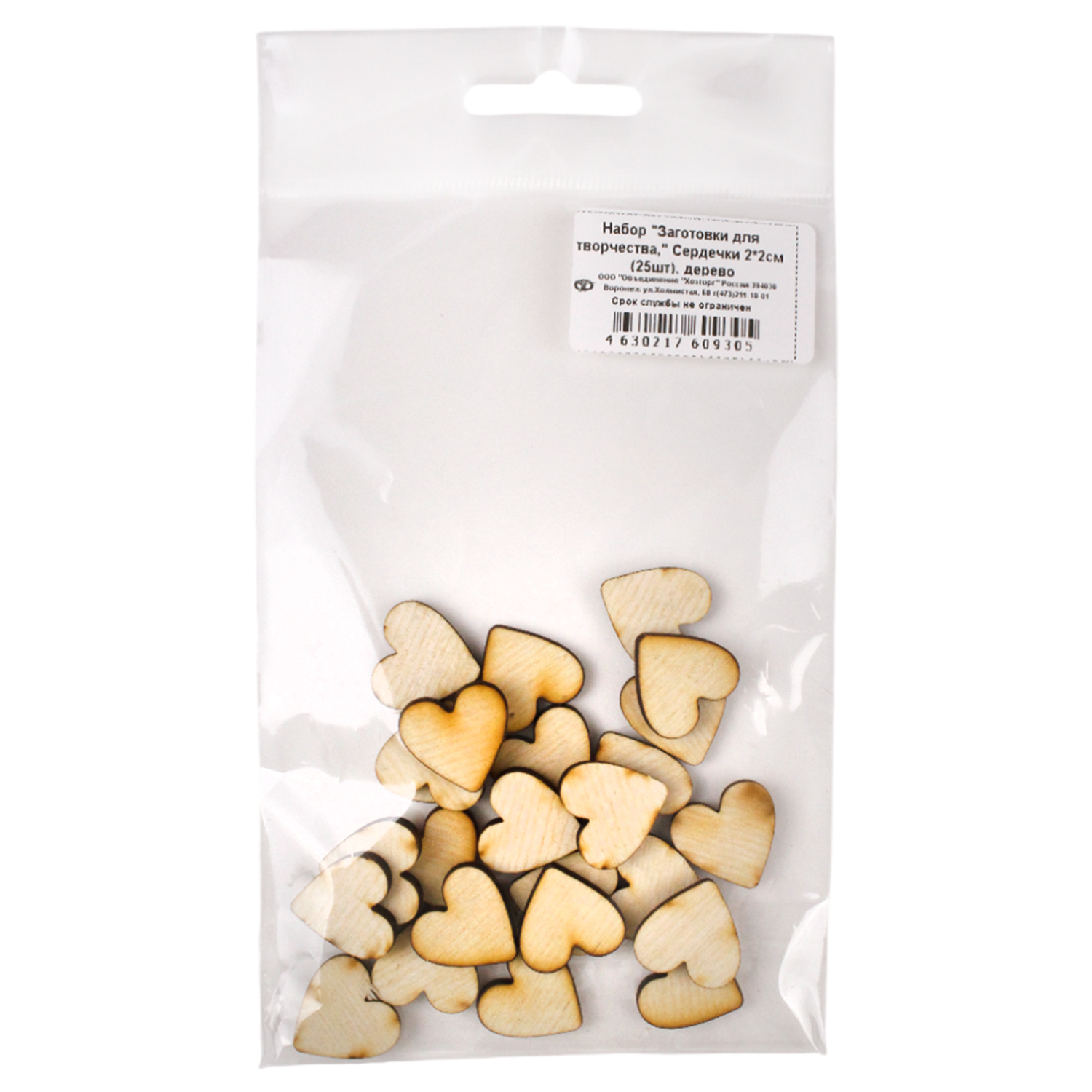 Набор "Заготовки для творчества," Сердечки 2*2см (25шт), дерево