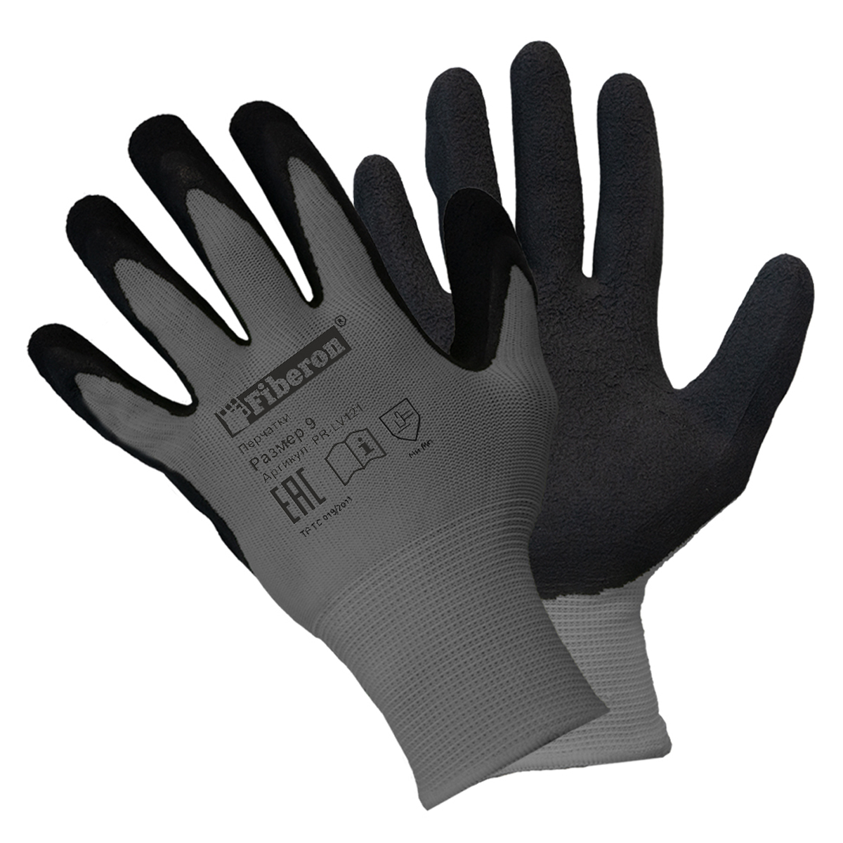 Перчатки PR-LV121 9(L) "Комфорт: графит", полиэстер, латексн.покрытие Fiberon/120/12
