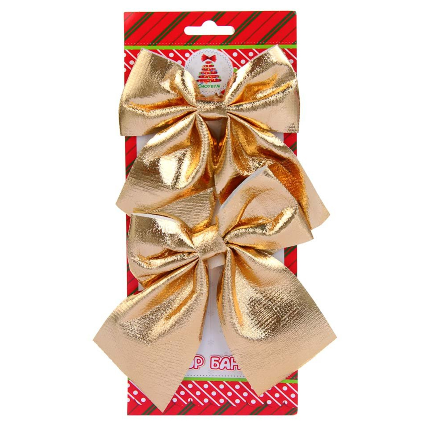 Набор бантов, 2 шт, 12x14 см, цвет золотой СНОУ БУМ (1/6) 376-807 (254987)