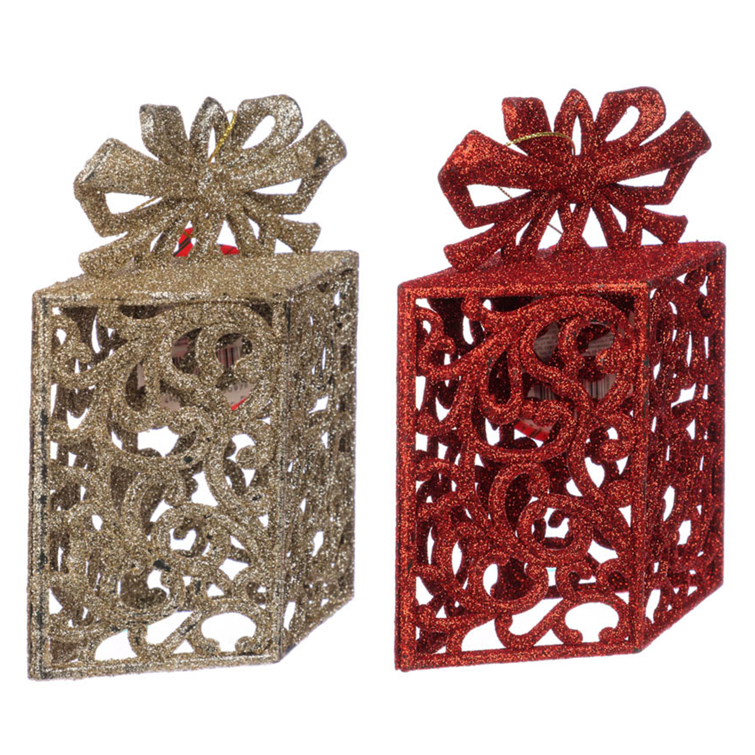Подвеска декор. в виде подарка, глиттер пластик, 14x11см СНОУ БУМ (1/12) 374-361 (245751)