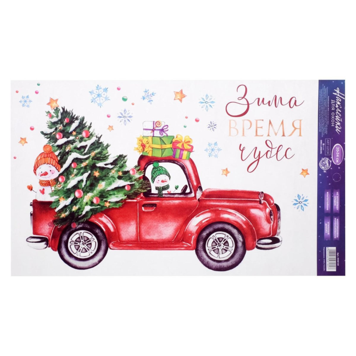 Наклейка на стекло Зима-время чудес 4948160 многоразовые, 20*34см