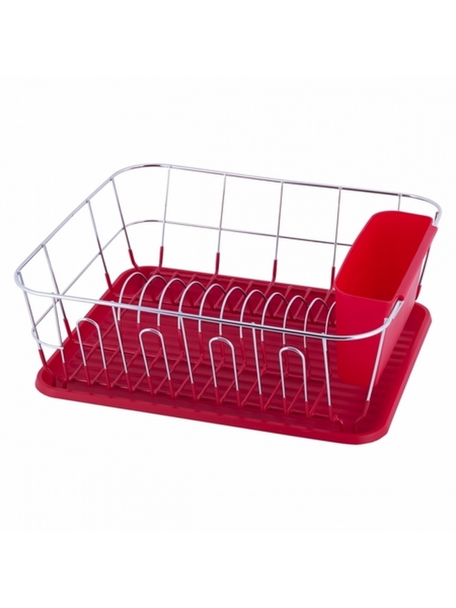 Сушилка д/пос. хром.сталь 0763B, 37*33*13.5см с поддоном(красный)