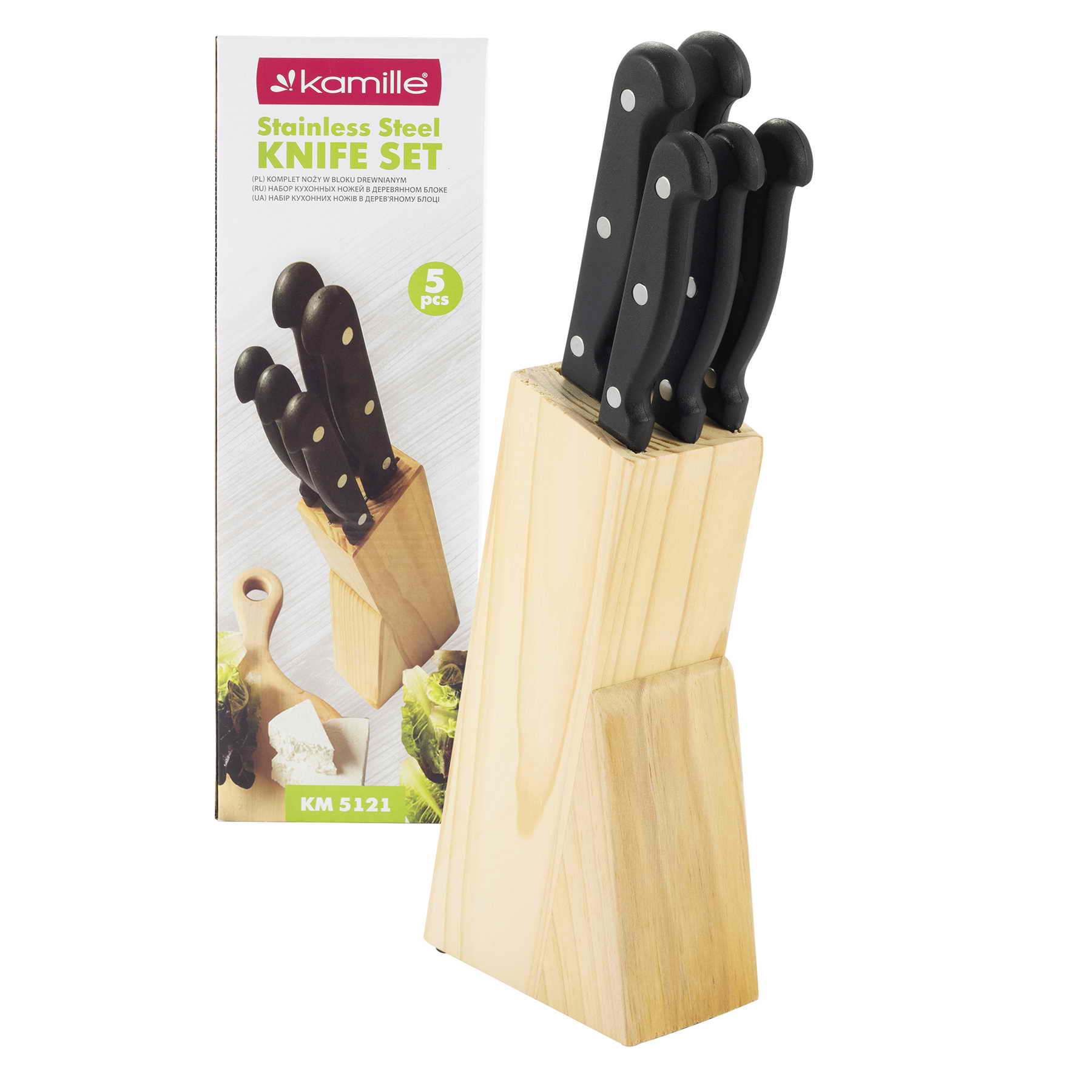 Набор ножей нерж. Kamille 5121, 6 предметов,с бакелитовыми ручками,дерев.подставка