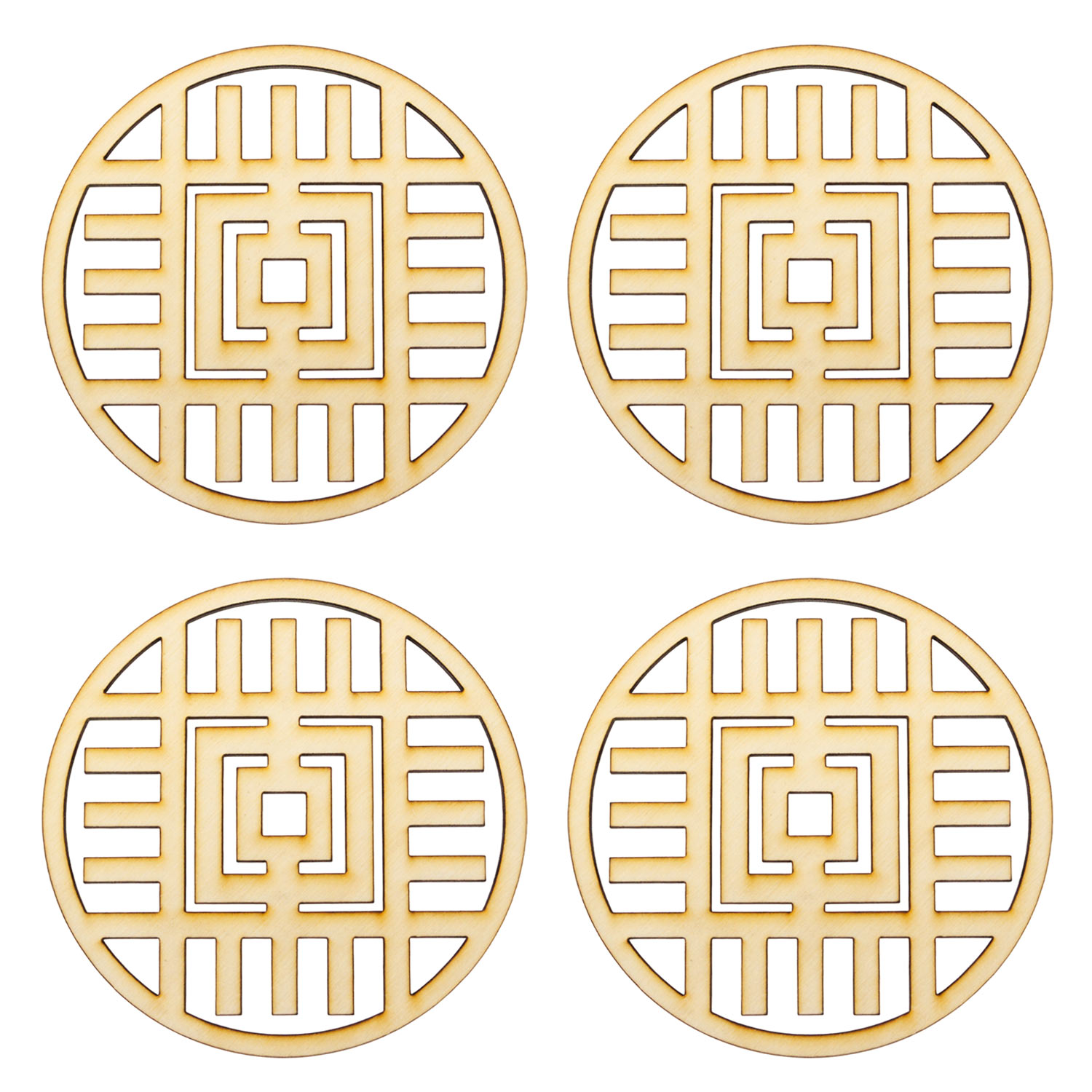 Набор из 4-х подставок под кружку "Фигуры", дерево ф100*3
