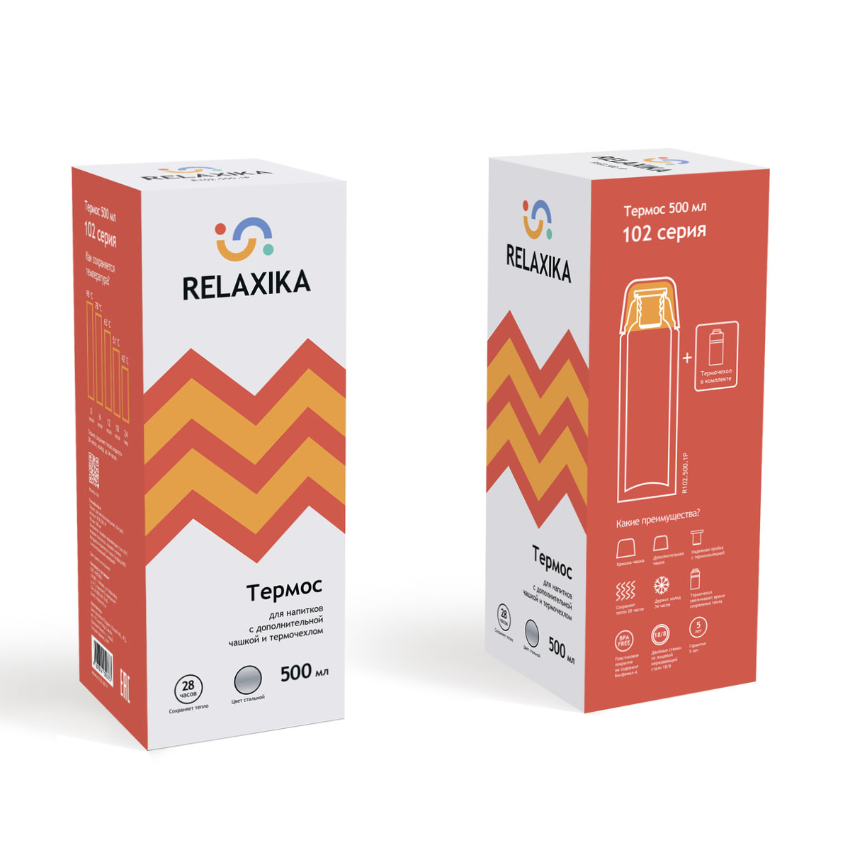 Термос нерж. Relaxika R102.500.1P, 0.5 л., в термочехле