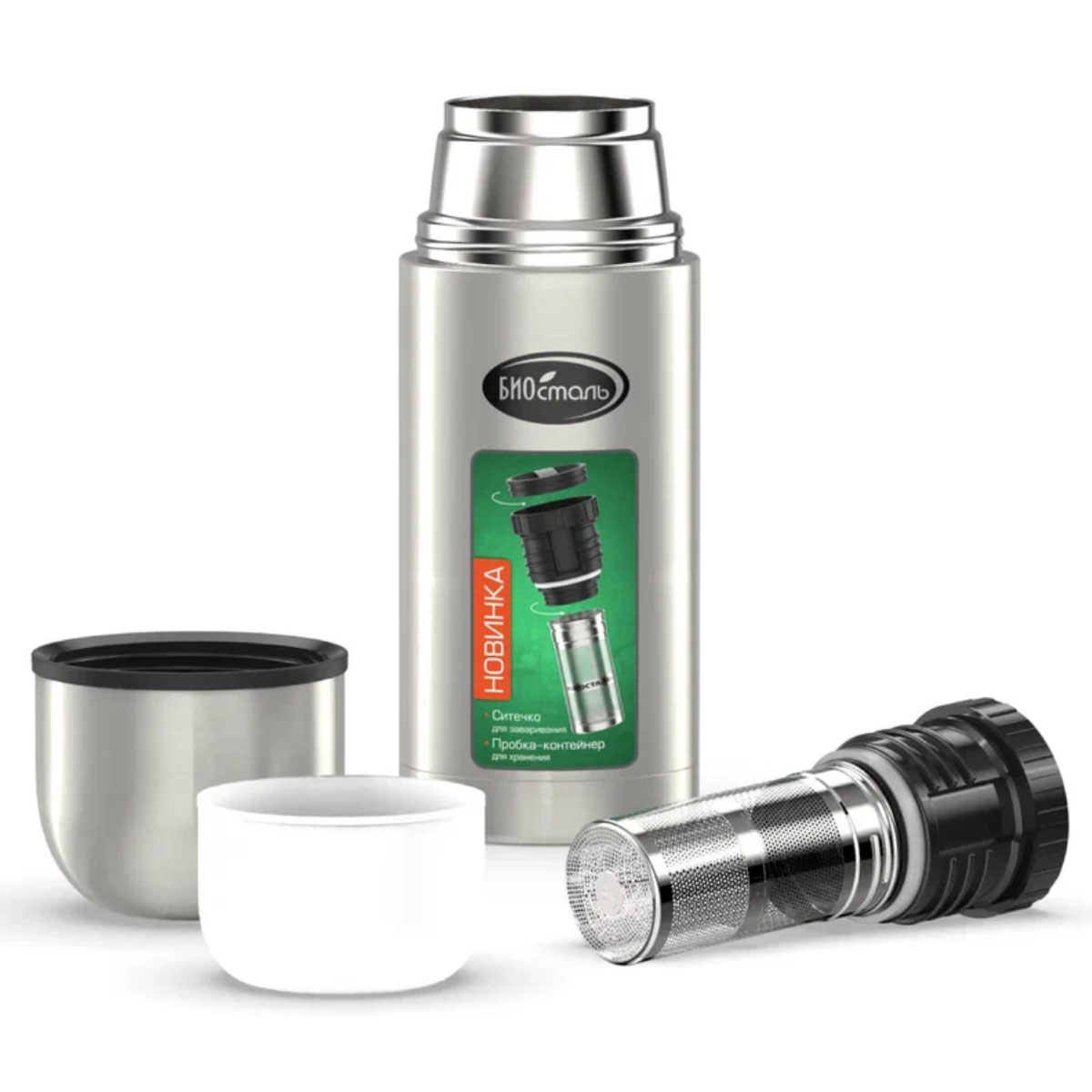 -Термос BIOSTAL-Охота NBP-500Z 0,5л с узкой горловиной, ПРОБКА С СИТЕЧКОМ 12