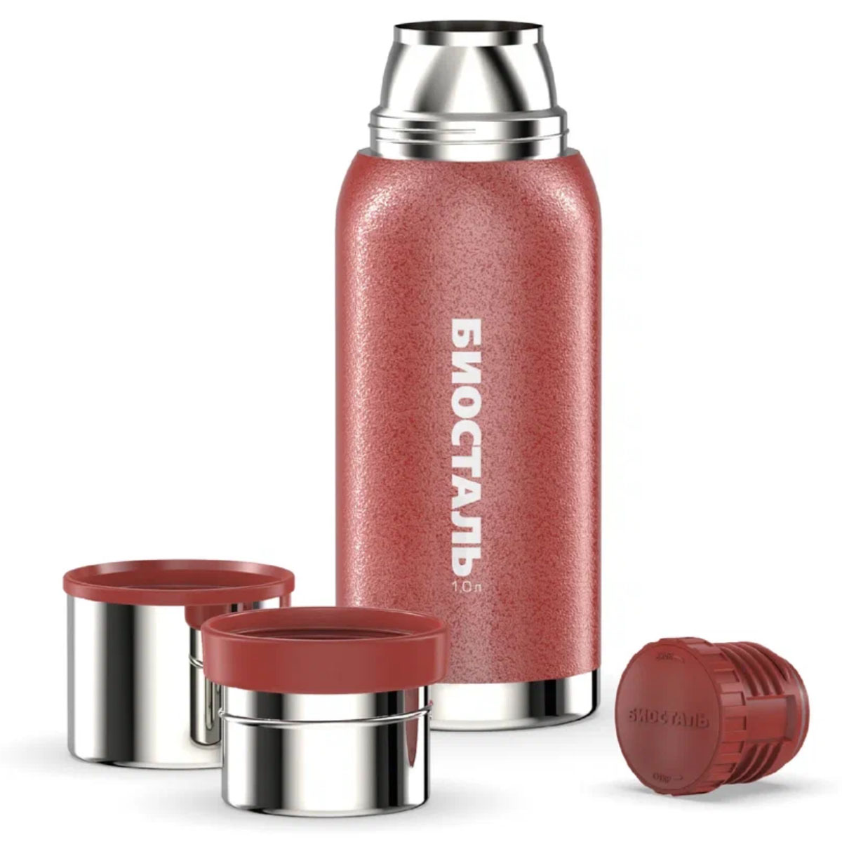 Термос BIOSTAL-Охота NBA-1000R 1л у/г с 2я чашками красный 12