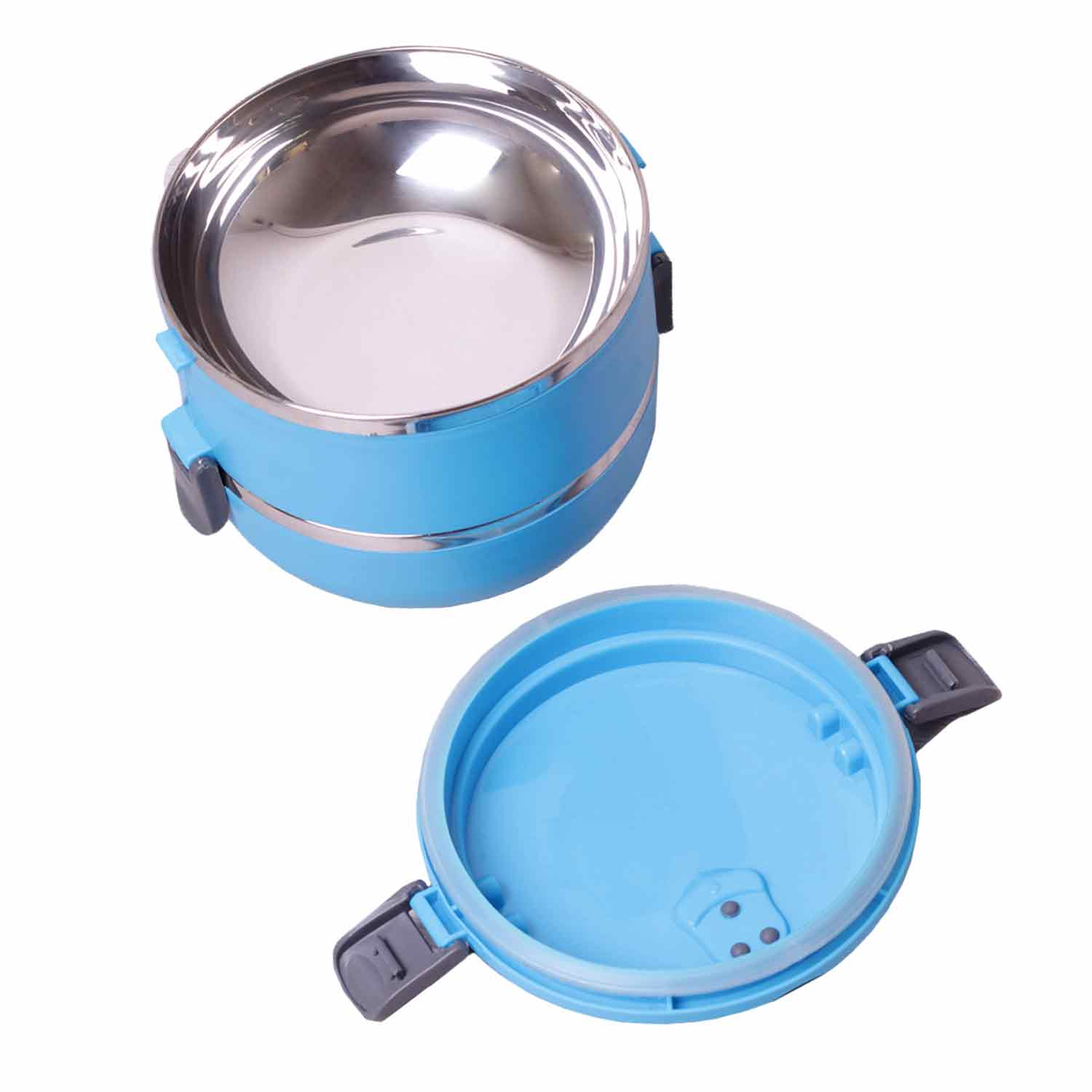 -Ланч-бокс двойной 2106 1400мл 16,5*15*13,5см, пласт.корп/внутр.емк.нерж.сталь,в ассорт