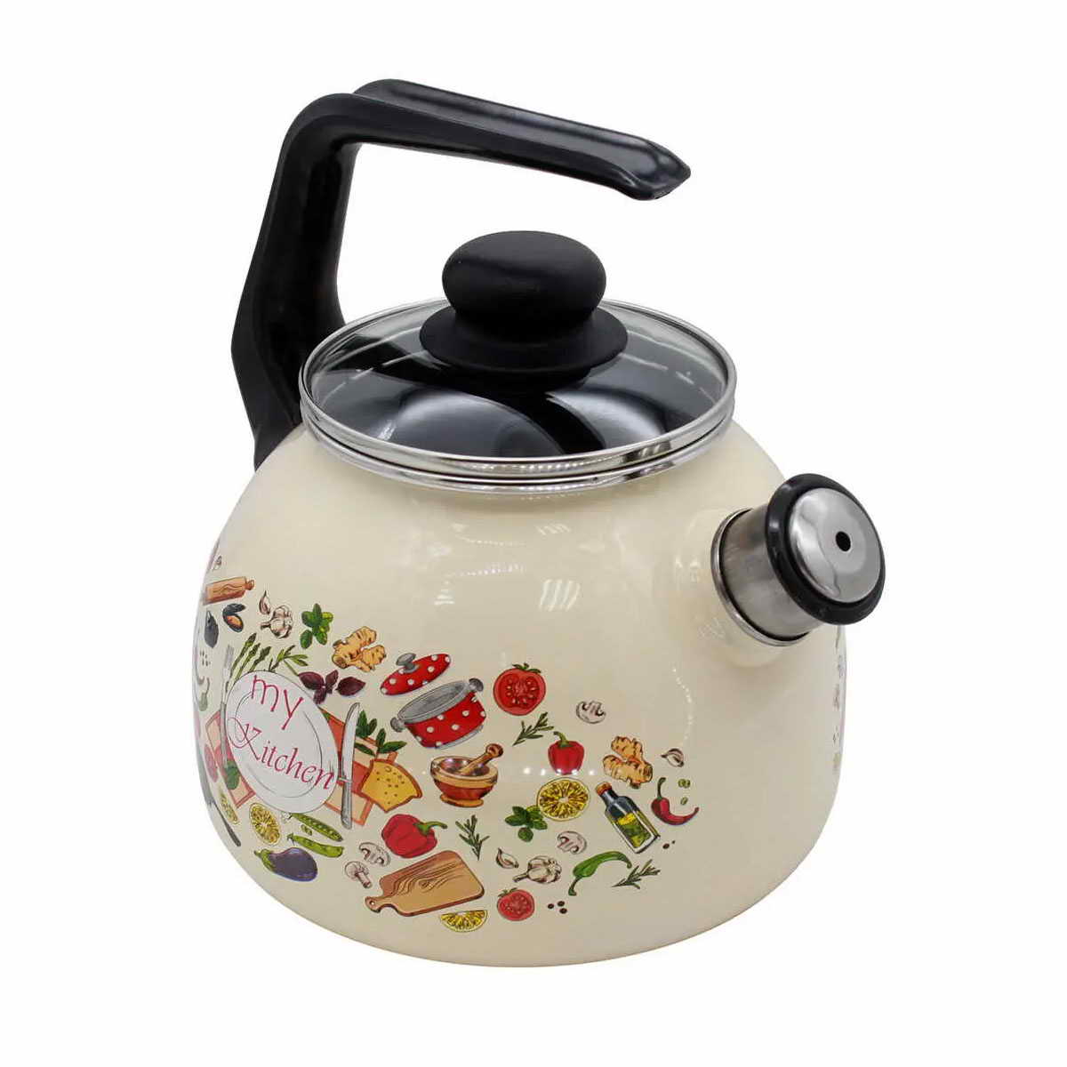 Чайник эмаль Стальэмаль "Моя кухня" 4С209/Я, 3,0л,со свистком, слоновая кость