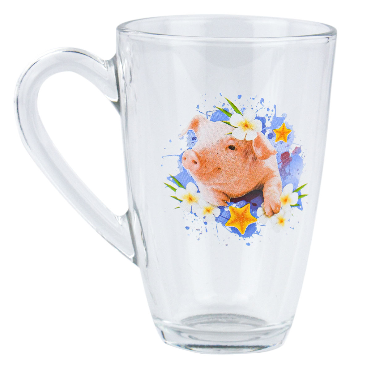 -Кружка д/чая стекл. "Веселый поросенок" 334-Д 300мл