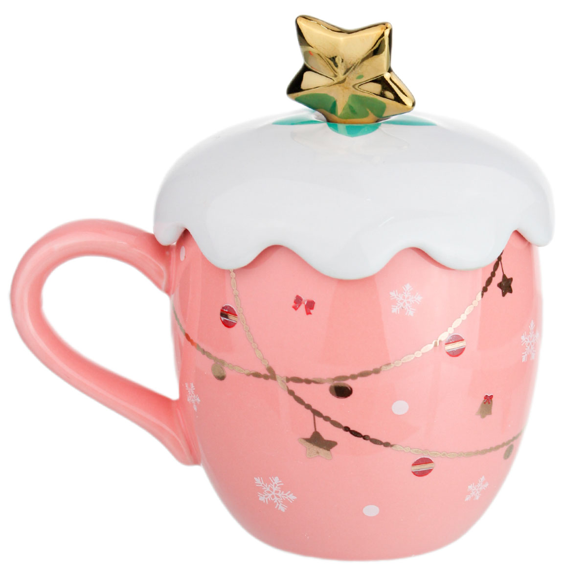 -Кружка HTND8 подарочная "Крутой Новый год" розовая 400мл, с ложкой