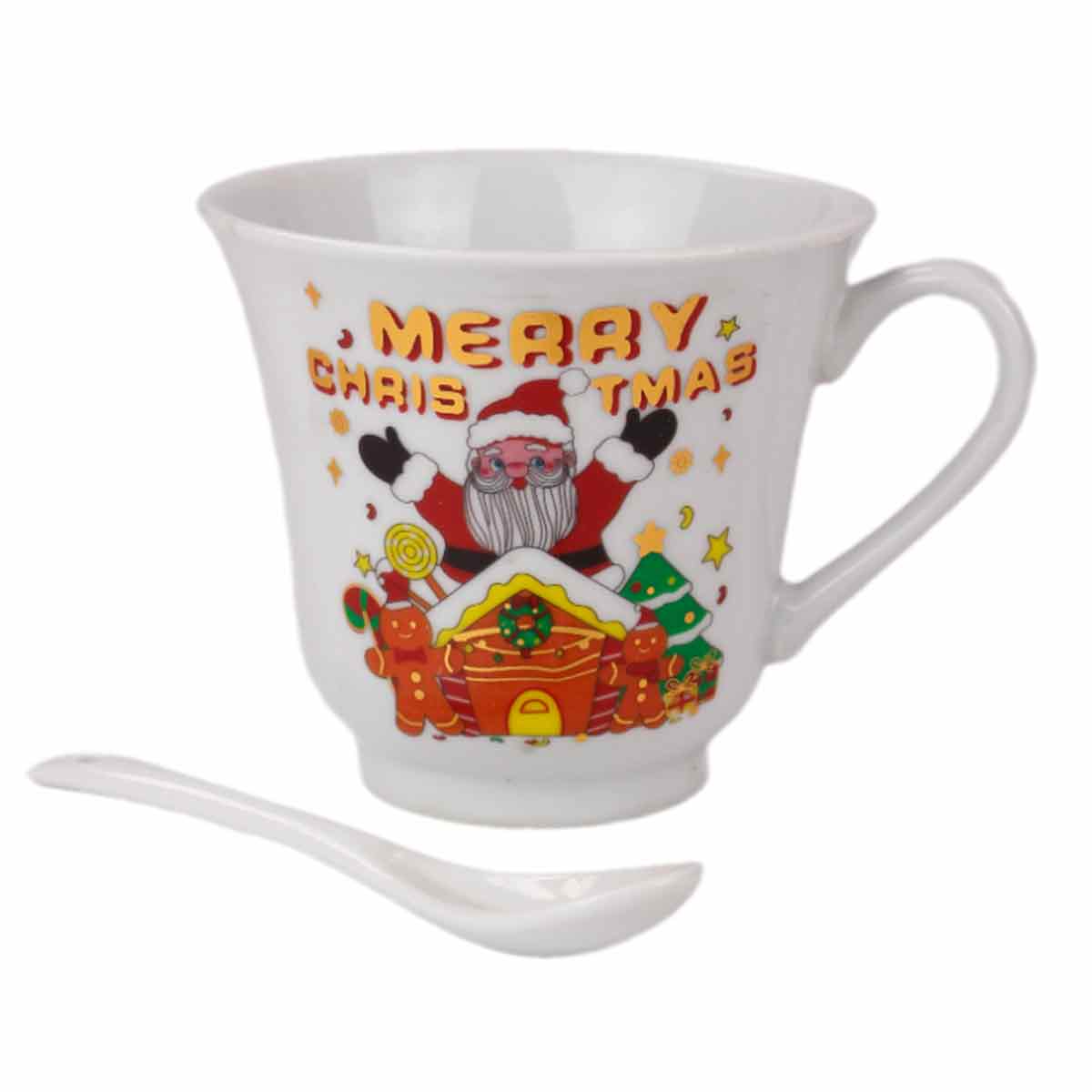 Кружка 230мл HTH047 подарочная в ассорт., с ложкой НГ, керамика