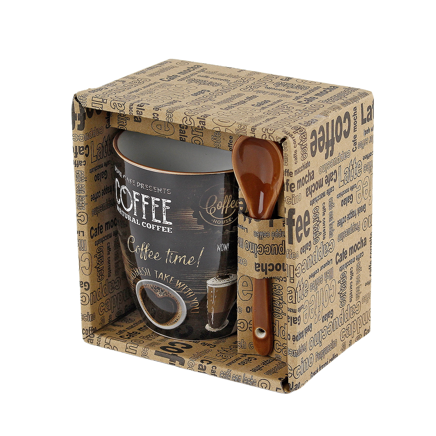 Кружка 340мл Бочка с ложкой Кофе с любовью R03H/2788J MIX 36