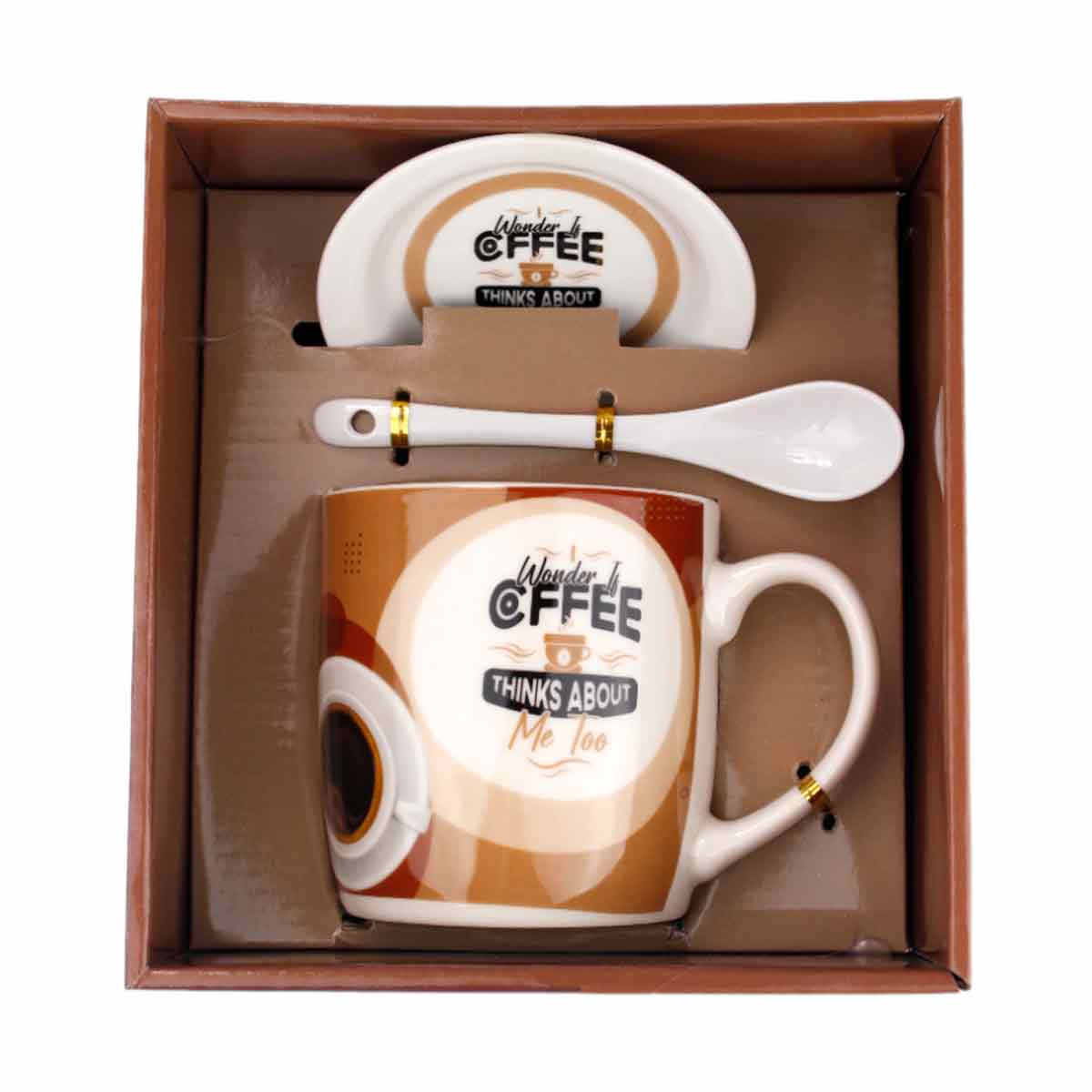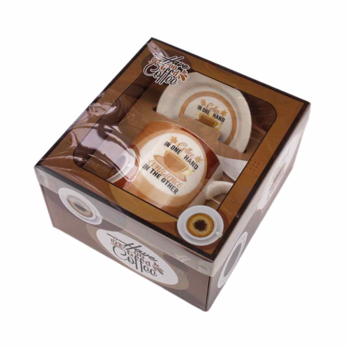Кружка 350мл с/кр/блюдце и ложкой Coffee подарочная керам HTKG12