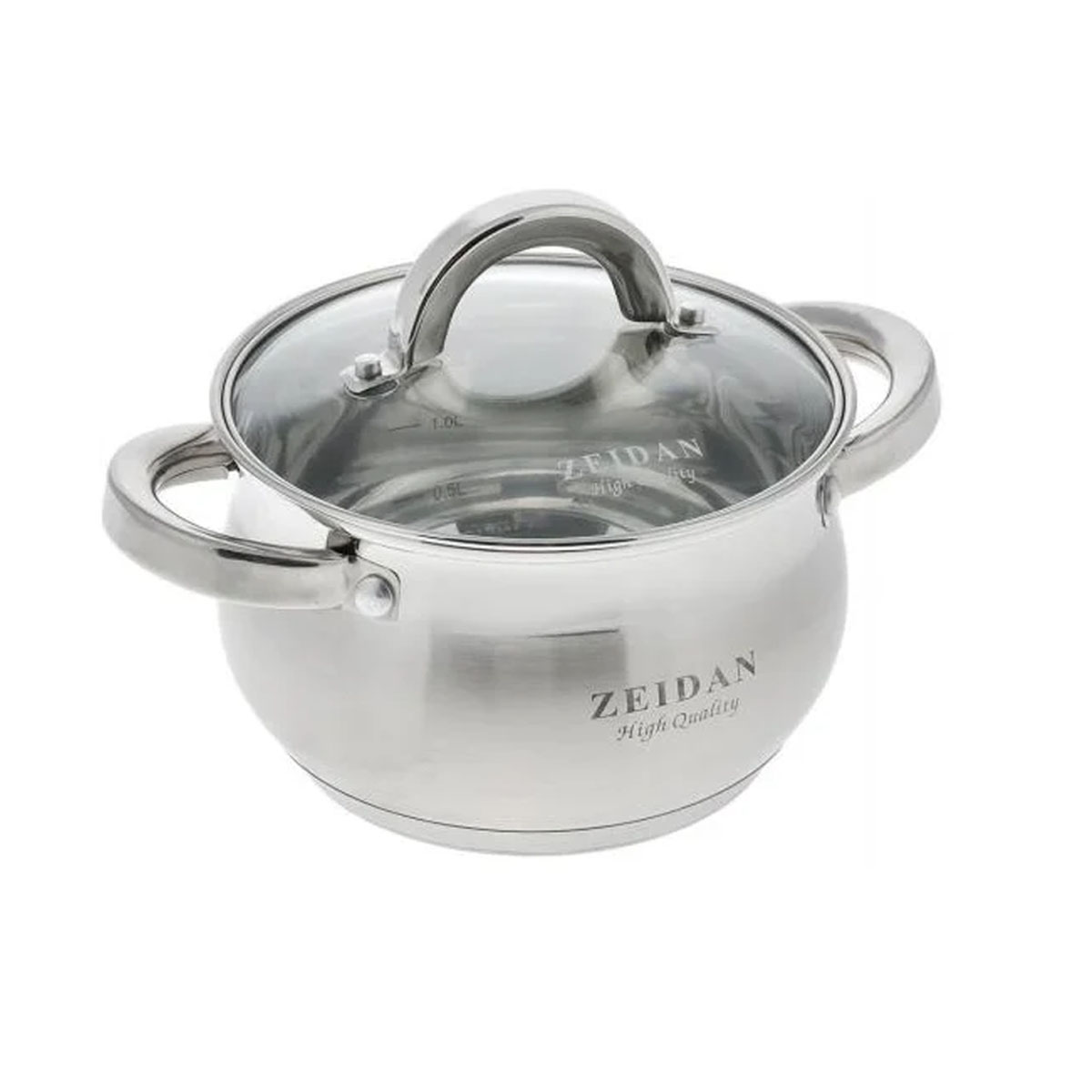 Кастрюля нерж. ZEIDAN Z-50237, 2.1 л., стекл.крышка, 5-ти слойное капсулированное дно