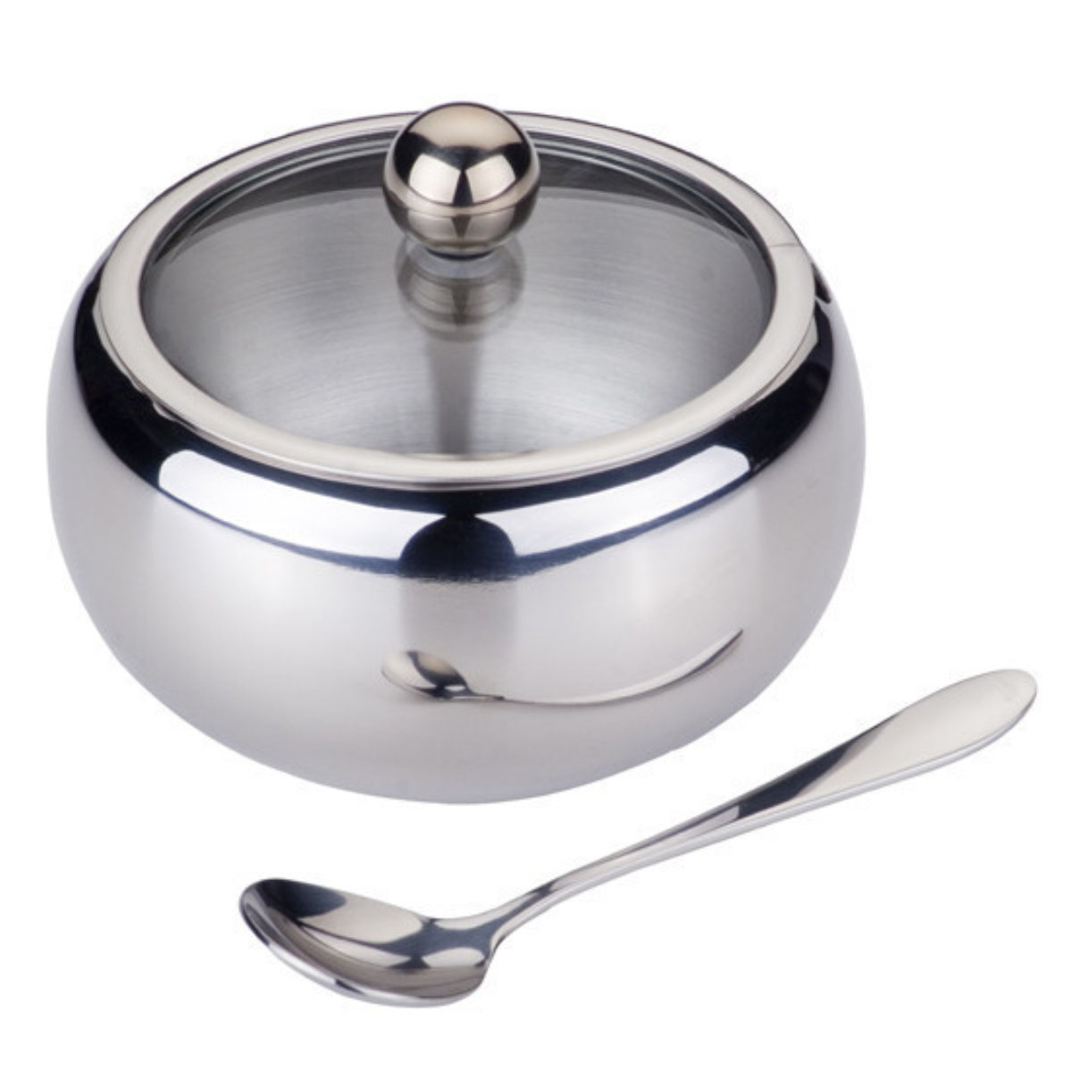 Сахарница 7002 460мл нерж с ложкой, стекл. крышка