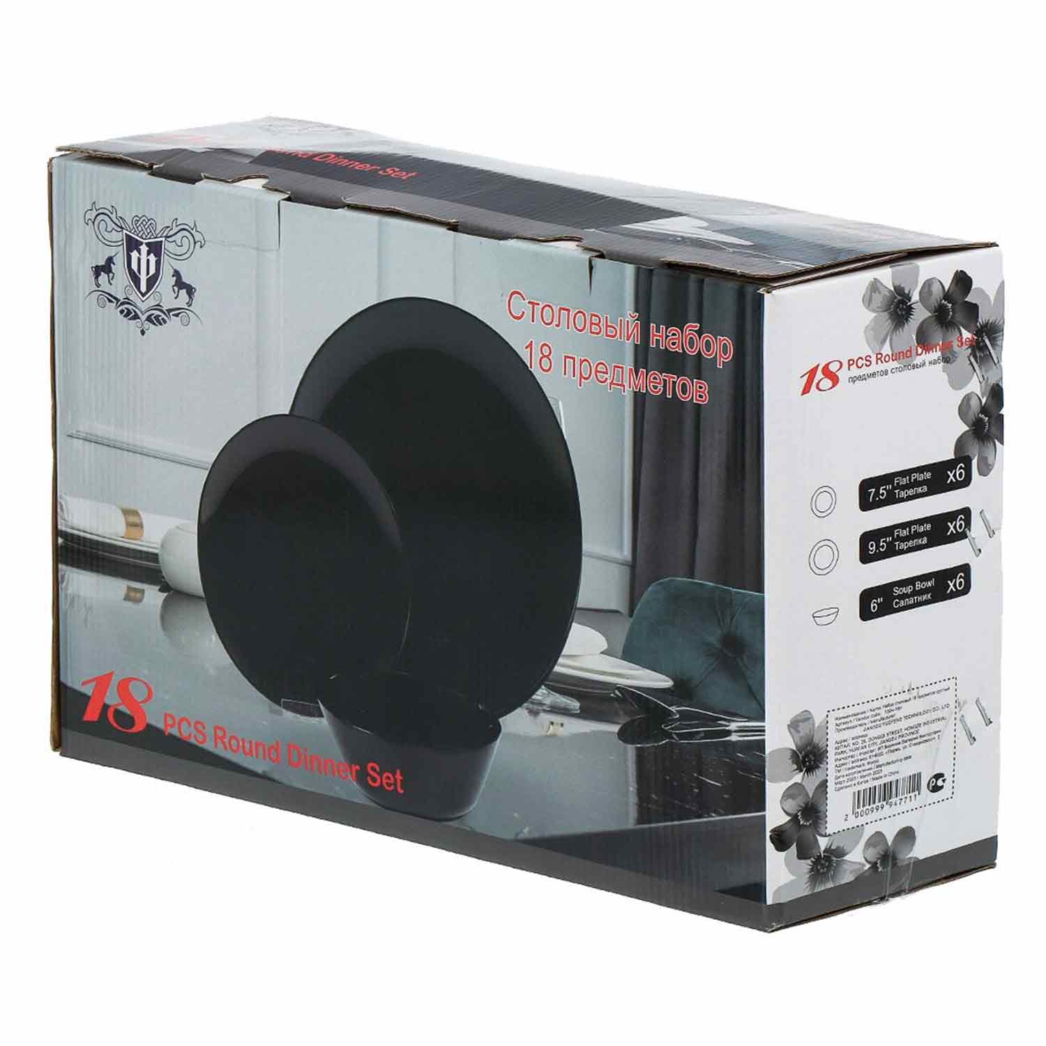 Набор столовый 18 пред стеклокер Луна черная 100ч-18лк гл. круглый