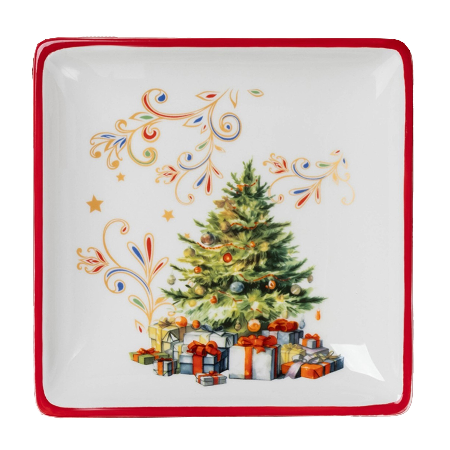 Тарелка 10338082 Доляна «Волшебное дерево» НГ 15*3см, керамика, белая
