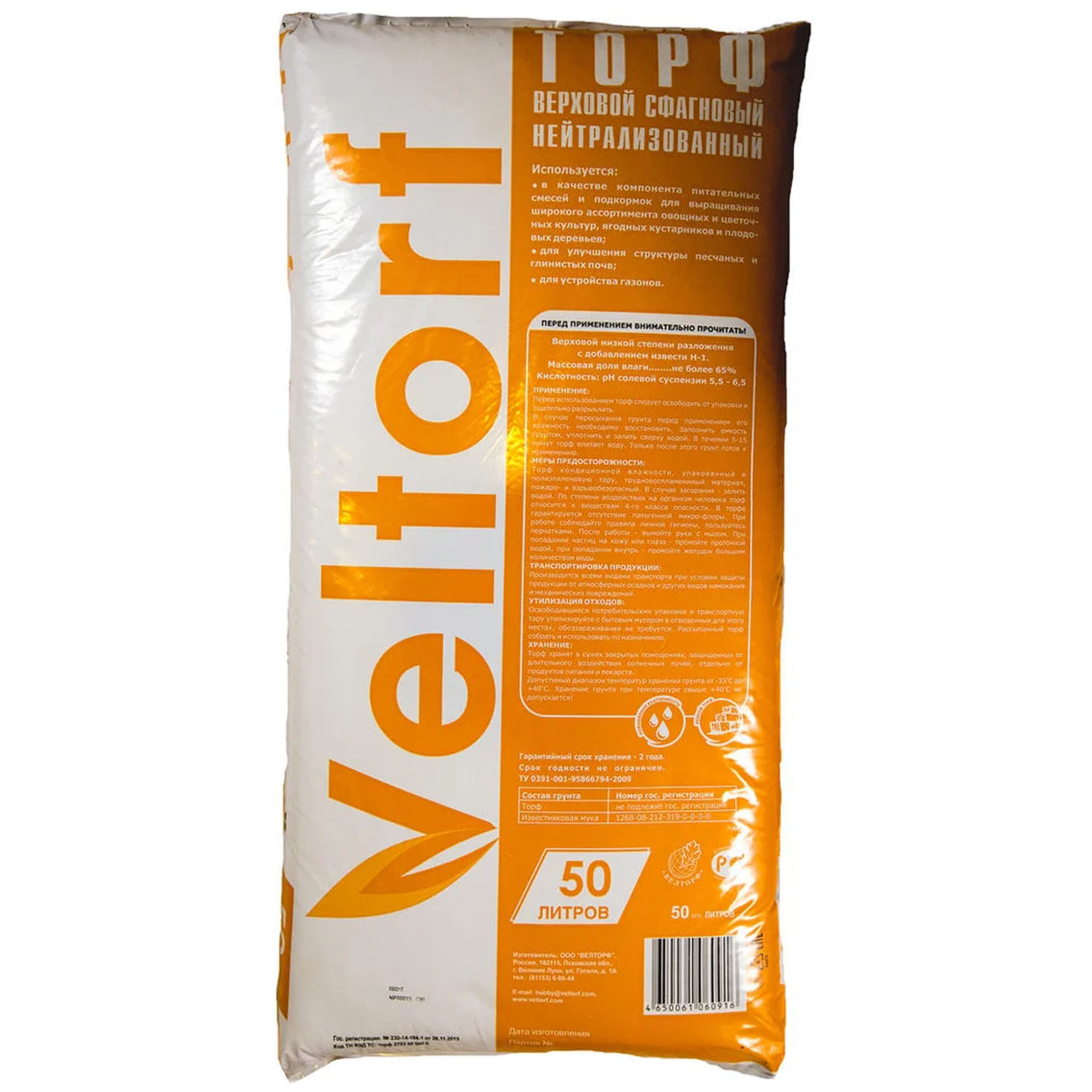 Торф "Верховой" сфагновый 50л "Велторф"